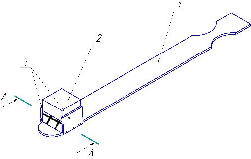 Во втором АГС-контактном узле в качестве пружинящего элемента используется пластина из нейзильбера размером 51,5х5х0,4 мм с закреплённым на ней АГС-контактом размером 5х5х5 мм |