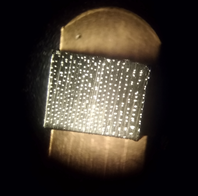 Рабочая сторона контакта. Каналы сквозной серебряной проводимости диаметром 0,1 мм регулярны в сетке с шагом 0,25х0,50 мм |